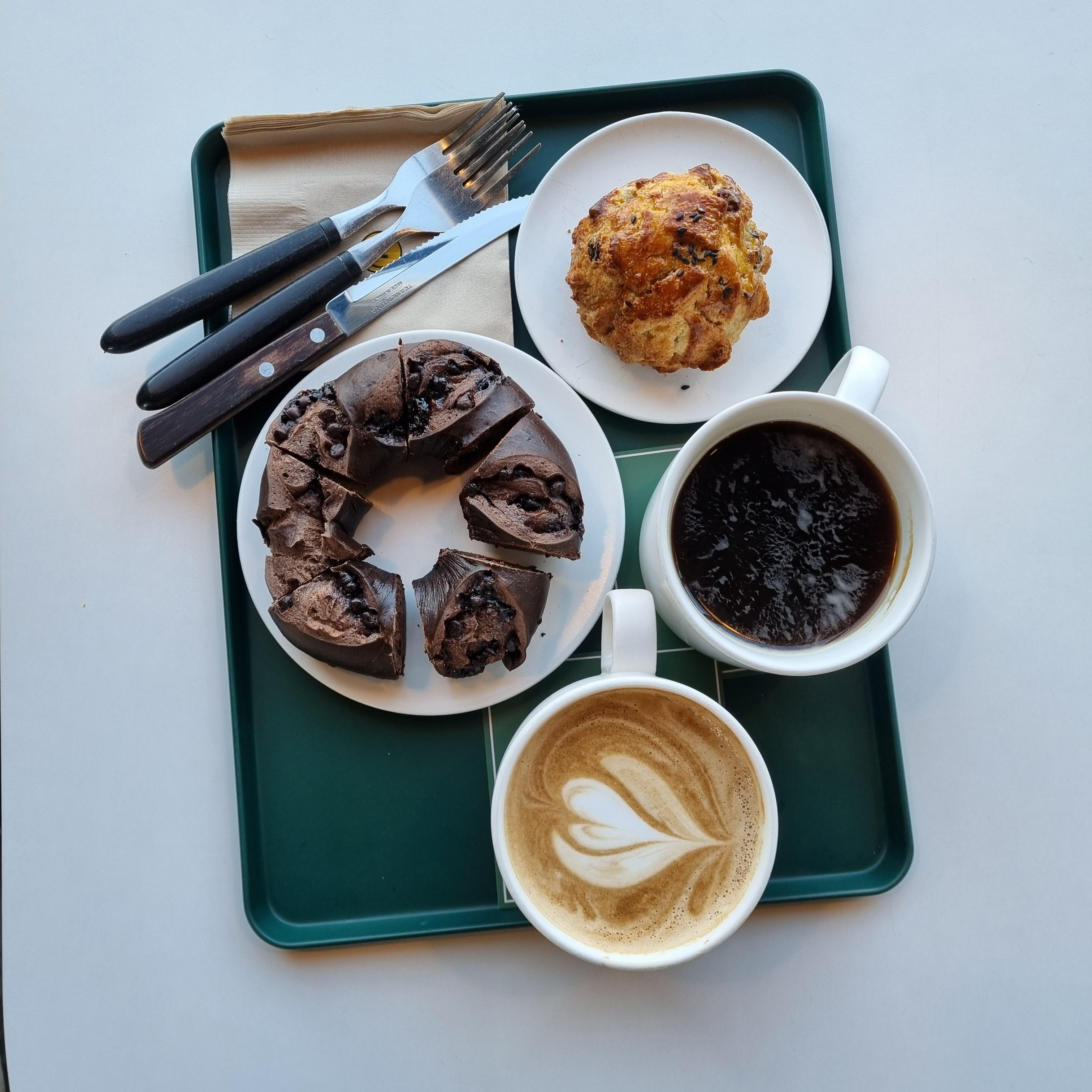 우리는 따뜻한 아메리카노, 라떼, 국진이 빵을 주문하였는데 검정색 초코베이글 처럼 생긴 빵을 주시는거에요....물어보니 서비스라고 하시더라구요😍😍😍 아니 저런거 주시고 남는게 있나요 사장님🤣 중요한건 맛인데 빵도쫀득한건이 초코도 많고 아메리카노와 정말잘어울렸고 국진이 빵도 와이프가 학창시절 생각난다며 즐거워 하는 모습을 보니 굿굿😄내부 모습입니다. 2층은 공간이 훨씬 넓고 아늑한 분위기 였어요 모임 하시는분, 재택업무하시는분, 프로그램작업하시는 분들 등 다양하게 있엇어요 분위기가 편안해서 아닐까요 😄😄😄